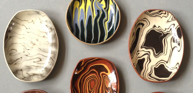 In this two-hour mini workshop you’ll learn how to use liquid clay slips and carved lines to build intricate surface designs. Working on soft clay slabs, we’ll demonstrate how to draw with slip, carve decorative lines and fill them with contrasting colours to produce striking patterns and textures.